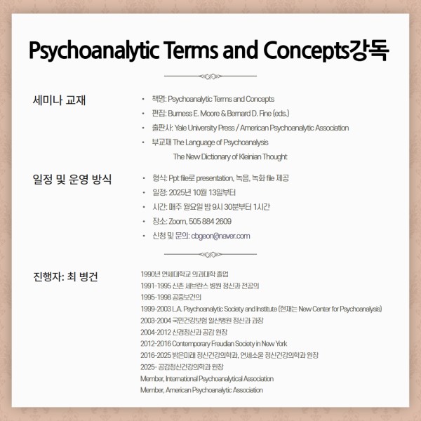 [최병건 정신분석가 온라인 세미나 안내]_Psychoanalytic Terms and Concepts 강독