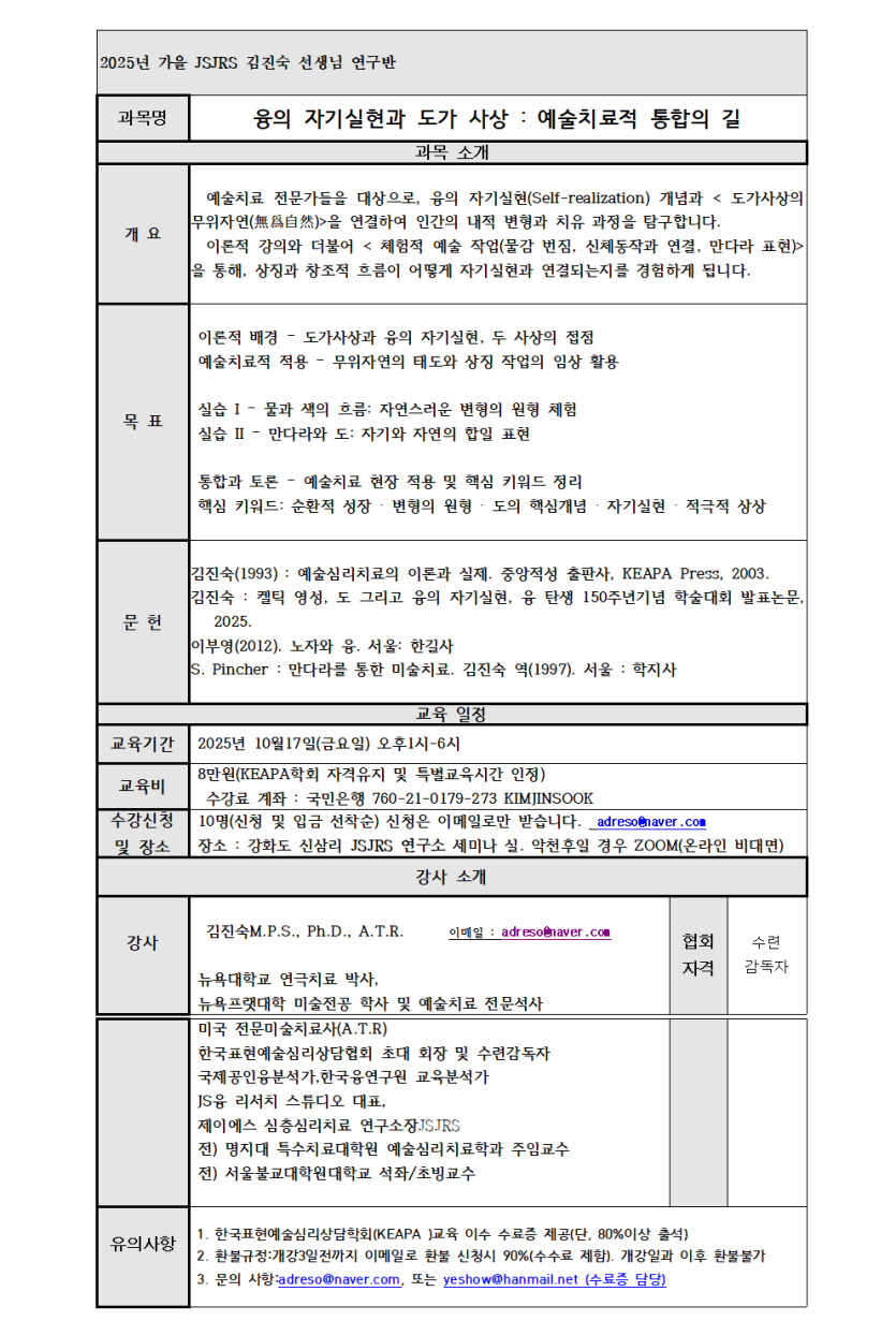 [연구반] 김진숙 선생님 연구반 모집안내입니다.