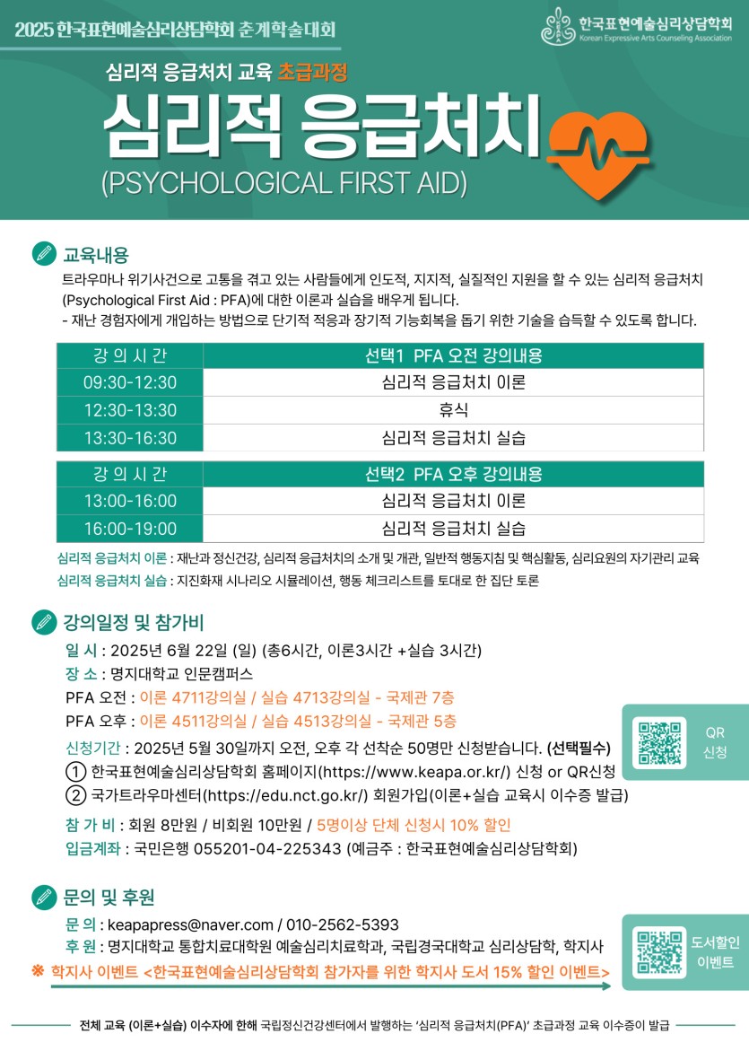 [춘계학술대회] 심리적 응급처치 / 오전 강의 마감, 오후 강의 신청 가능
